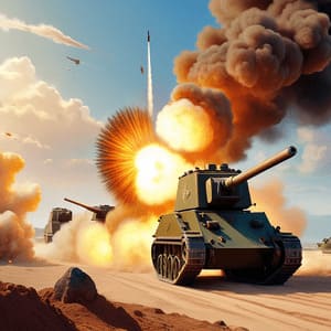 Война, перестрелка и выстрел танка