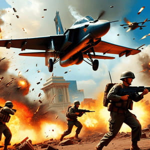 Война, перестрелка, самолеты