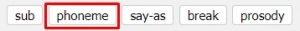 Чтобы применить алфавит к слову, нажмите на кнопку SSML, появится дополнительная панель, выделите слово и нажмите phoneme. Слово обернется в тег, внутри которого нужно прописывать слово в МФА-алфавите.